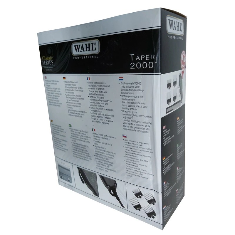 ماشین اصلاح وال (Wahl) مدل تیپر 2000 یک ماشین اصلاح حجم زن با برش مستقیم و موتور پرقدرت V 5000 و سرعت 6000 دور در دقیقه است که دارای تیغه کروم ضد زنگ عریض 40 میلیمتری میباشد. این دستگاه مناسب اصلاح انواع موی سر میباشد و قابلیت تنظیم سایز اصلاح از 0.5 تا 2 میلیمتر با اهرم تنظیم ارتفاع را دارد.